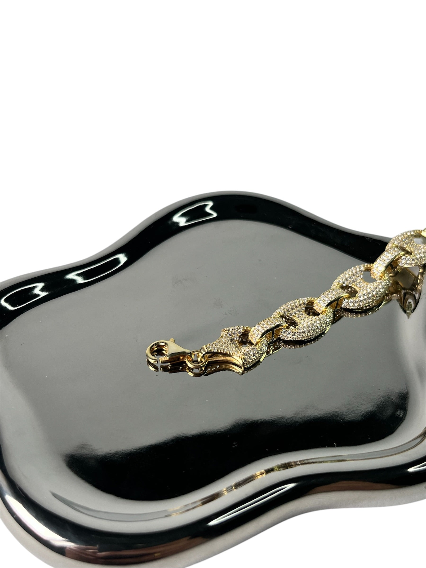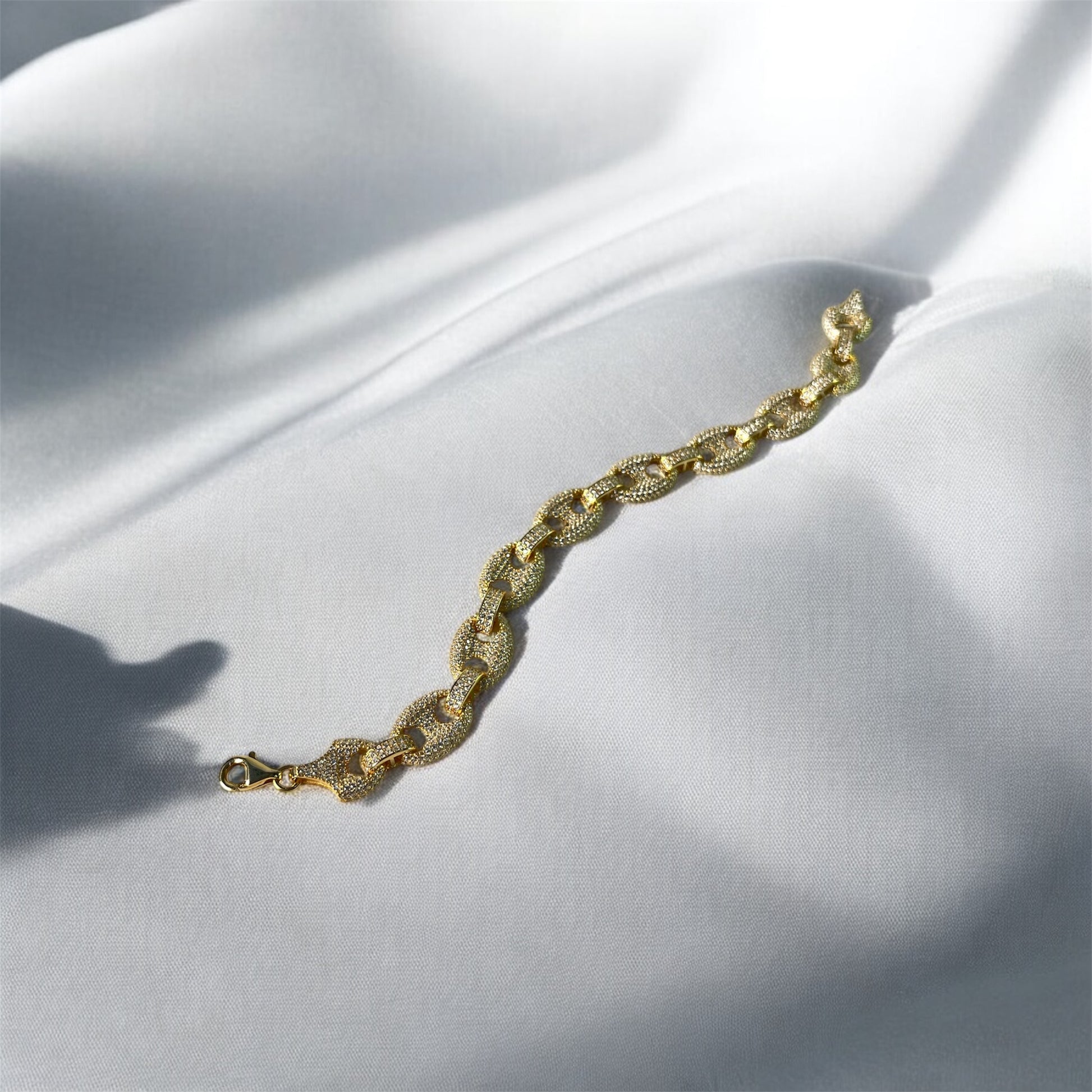 Vergoldetes Silberarmband im Kaffeebohnenmuster mit CZ-Steinen (11 mm, 20 cm)