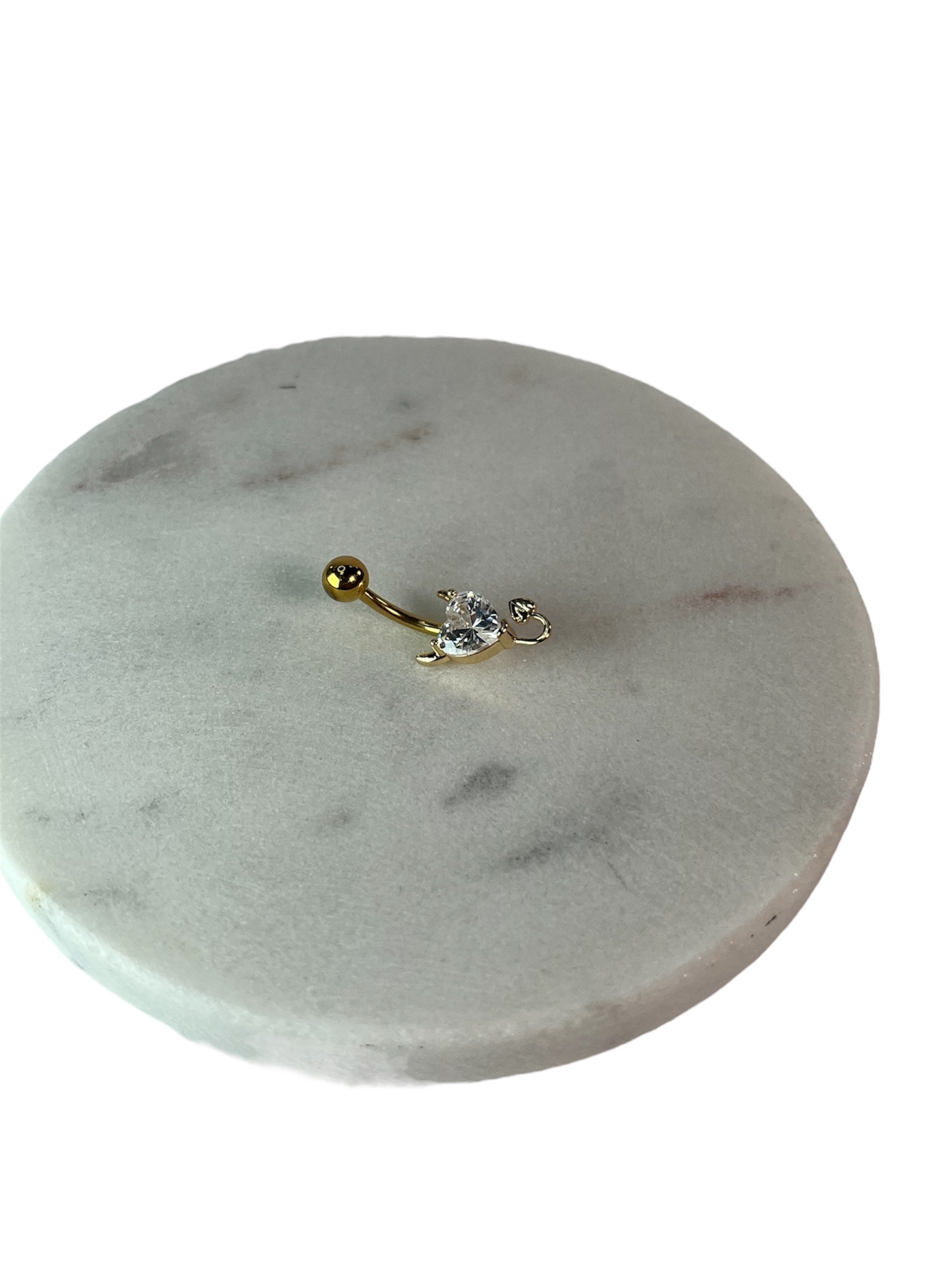 Frech, funkelnd und verführerisch: Dieses außergewöhnliche Bauchnabelpiercing setzt mit seinem vergoldeten Teufelchen-Herz ein klares Statement. Der charmante Anhänger in Herzform ist mit kleinen Hörnern und einem geschwungenen Teufelsschwanz versehen – verspielt und rebellisch zugleich. Die glänzende Goldbeschichtung sorgt für eine edle Ausstrahlung, während das freche Design deinem Look das gewisse Etwas verleiht.