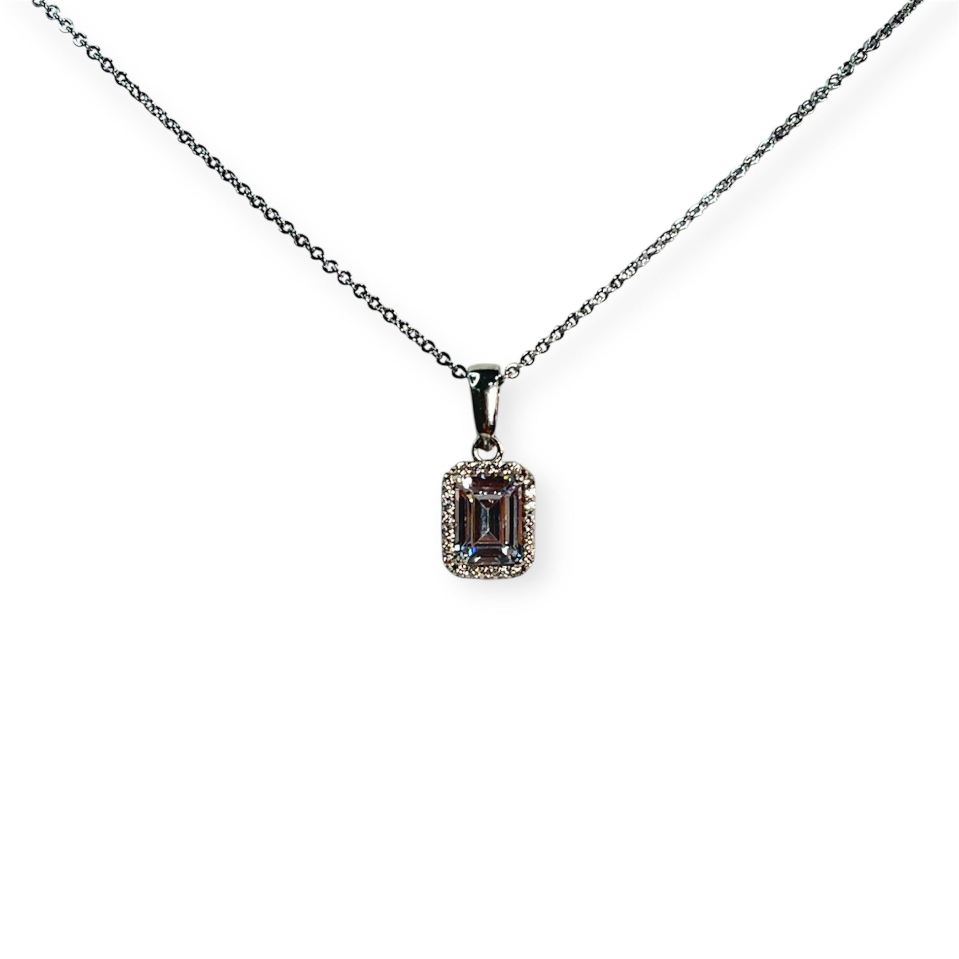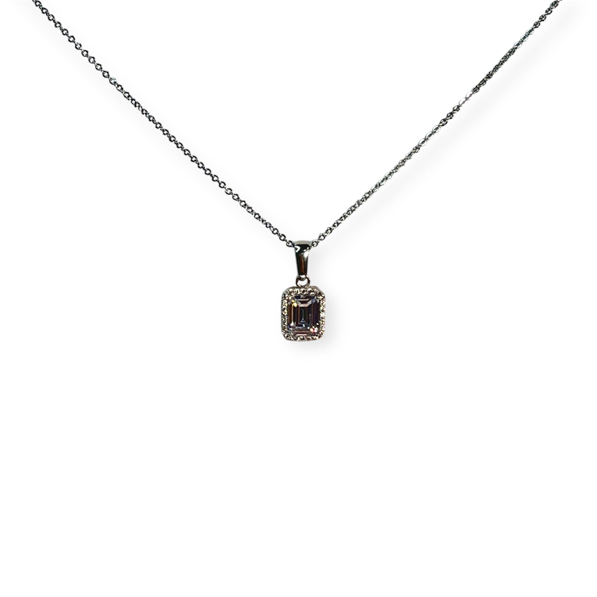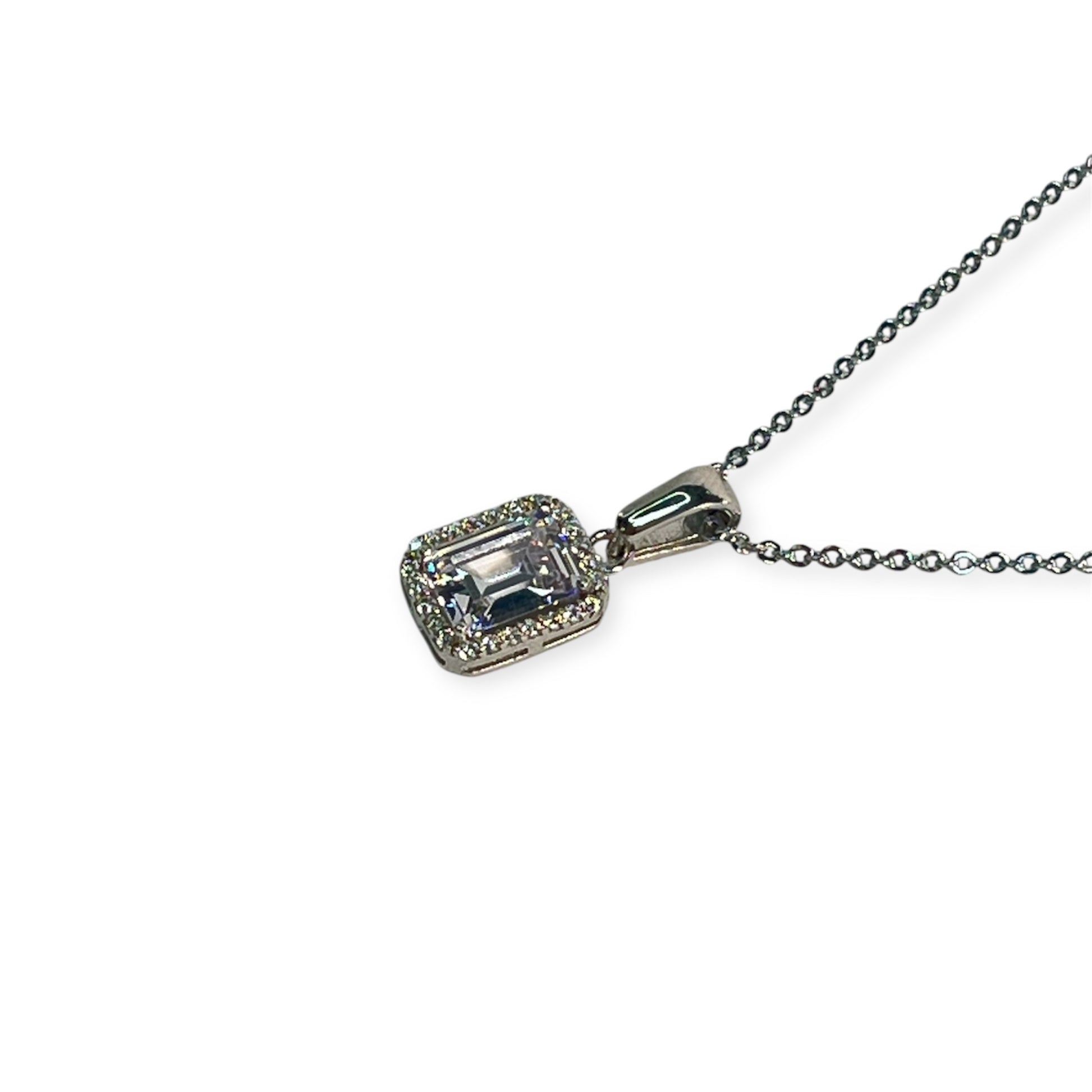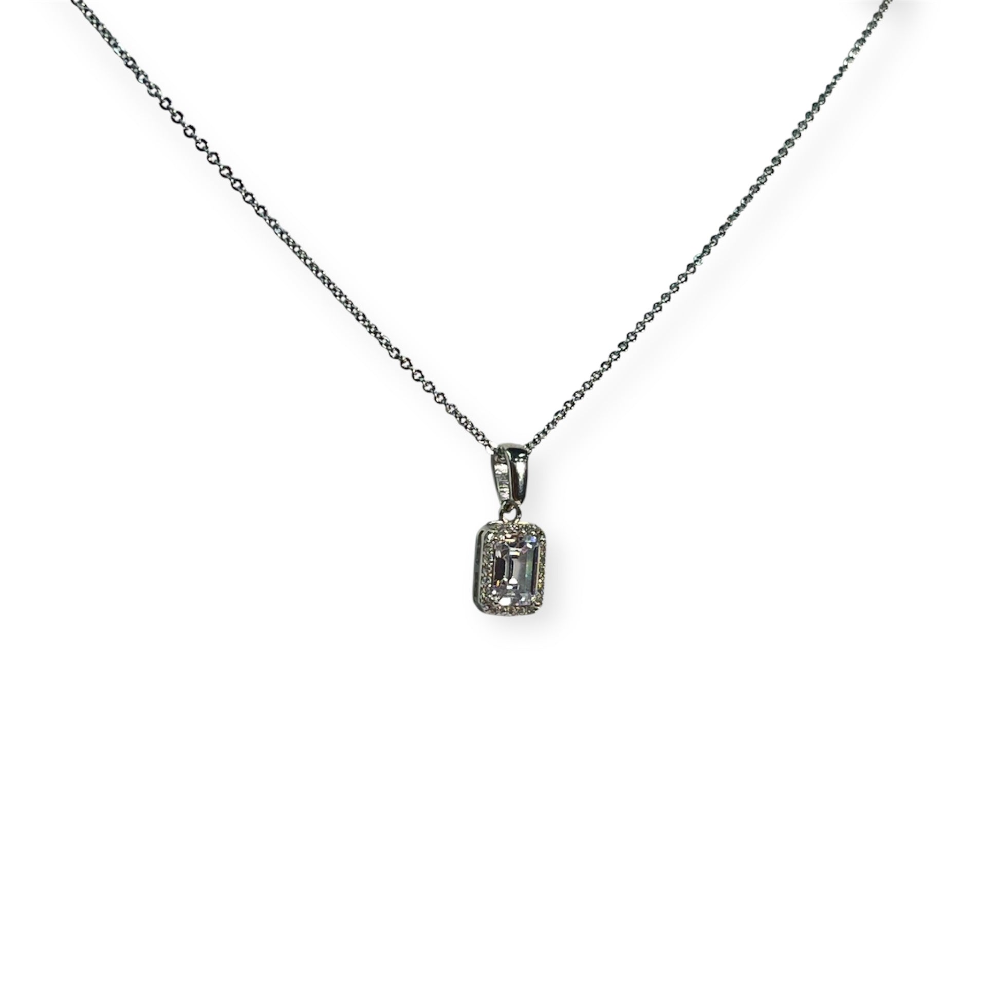Diese 45 cm lange Kette aus echtem 925 Sterling Silber überzeugt mit einem rechteckförmigen Anhänger, in dessen Mitte ein funkelnder Stein sitzt. Umrahmt wird er von feinen, kleinen Steinchen, die dem Design ein edles Finish verleihen. Ein zeitloser Klassiker – minimalistisch und doch ausdrucksstark.