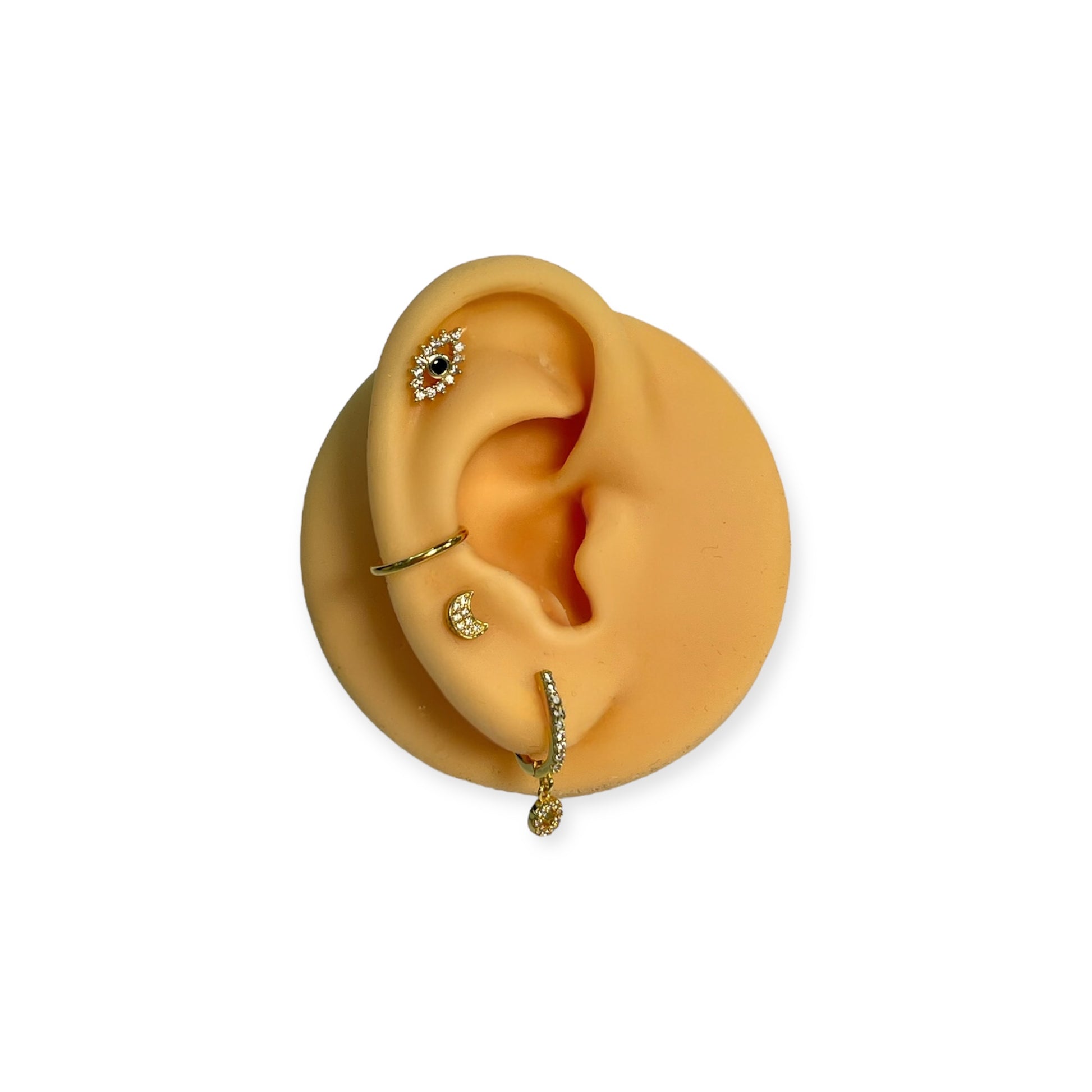 Mystisch, modern und ein echter Blickfang: Dieses hart vergoldete Edelstahl-Piercing in Eye-Shape setzt ein kraftvolles Statement. In der Mitte strahlt ein schwarzer Stein als Pupille – symbolisch, stark und stilvoll. Ideal für alle, die auffallen wollen – mit Tiefe und Bedeutung.